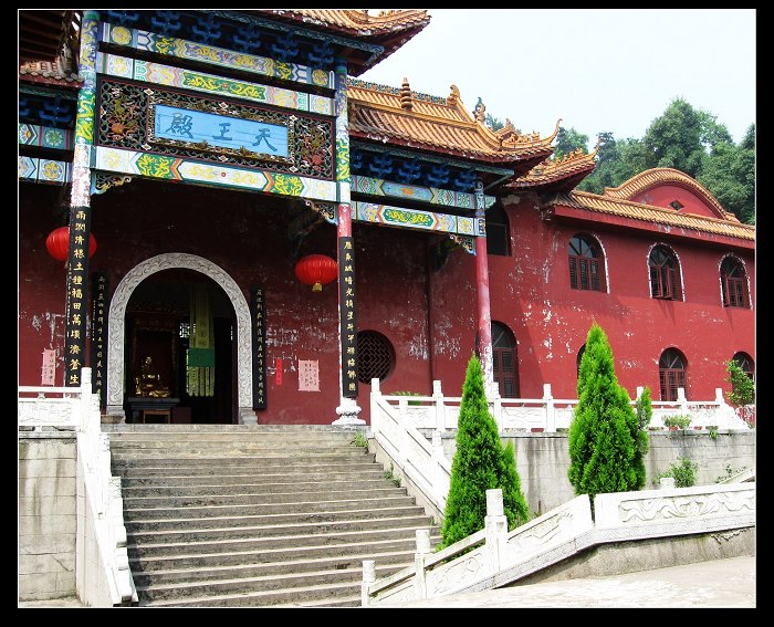位于帝嚳祠正下方石獅子垅。占地30畝。整個寺廟為三級梯田式結(jié)構(gòu)。第一級為山門,第二級為天王殿,第三級為大雄寶殿(佛堂),總建筑面積4400平方米,其佛堂1000平方米,48根立標(biāo),負(fù)山而立。整個建筑莊嚴(yán)、雄偉、典雅。不僅能容納眾多的燒香拜佛者,而且比丘住房還能為100多位香客提供住宿?,F(xiàn)已成為雨母山的宗教圣地。