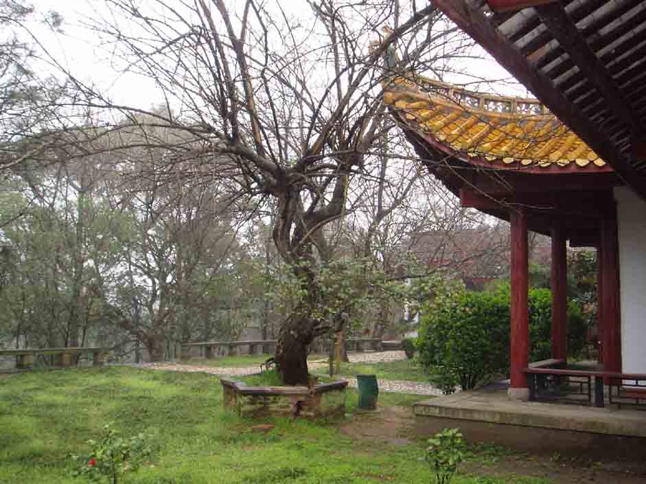 酒香亭在君山中部的酒香山峰上,掩映在翠竹藤蔓之中。入亭小憩,不僅鳥語(yǔ)花香,更有一股隱隱酒香撲鼻。原來(lái)此山中生長(zhǎng)著一種開黃色小花的青藤,花香帶著酒味,這種藤叫酒泉藤,傳說用藤上小花釀的酒,喝了長(zhǎng)生不老,可以成仙,這事傳到漢武帝耳里,他便派使臣欒巴率領(lǐng)男女?dāng)?shù)十人趕來(lái)君山,取回了仙酒。酒到京城,卻被當(dāng)時(shí)能言善辯的臣子?xùn)|方朔偷飲了。漢武帝得知,“龍顏”大怒,要將東方朔斬首。東方朔不慌不忙地奏道:“如果喝了此酒真會(huì)長(zhǎng)生不老,可以成仙,皇上就殺我不死,如果臣被殺死了,此酒皇上喝了也不會(huì)長(zhǎng)生不老。”武帝無(wú)言以對(duì),便赦免了他。這事傳到了君山,人們便在酒香山修了酒香亭,以為紀(jì)念。如今的此亭,為一九八一年恢復(fù),占地近三十二平方米,高六米余,為四柱方形、磚石木混合結(jié)構(gòu),古香古色,富有詩(shī)意。