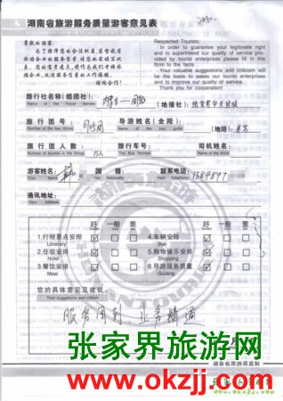 2010年7月14日韓先生一行15位旅游質(zhì)量反饋
