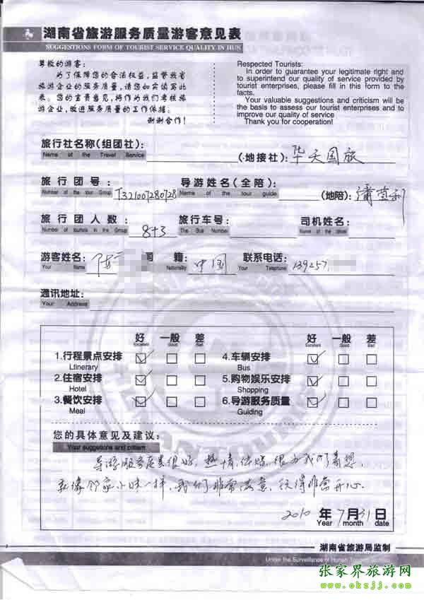- 游客夏先生為表揚(yáng)導(dǎo)游李姣姣寫來表揚(yáng)信致我張家界... [14811]