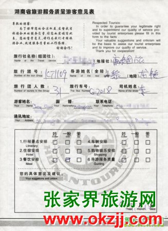 2009年11月9日馬來(lái)西亞yeap先生一行31人旅游接待質(zhì)量反饋單: