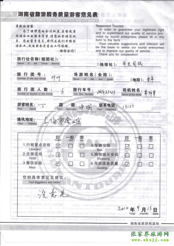 - 游客夏先生為表揚(yáng)導(dǎo)游李姣姣寫來表揚(yáng)信致我張家界... [14811]