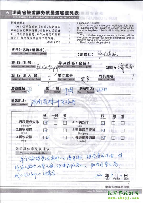 - 游客夏先生為表揚導(dǎo)游李姣姣寫來表揚信致我張家界... [14811]