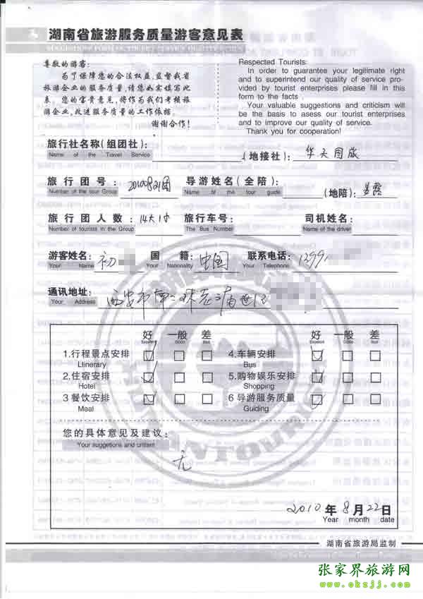 2010年8月22日西安初小姐一行15人旅游質量反饋