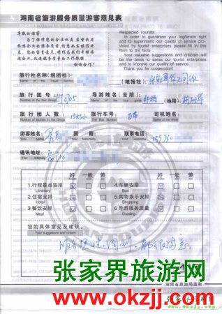 2010年7月7日岳陽暑先生一行18位旅游質(zhì)量反饋