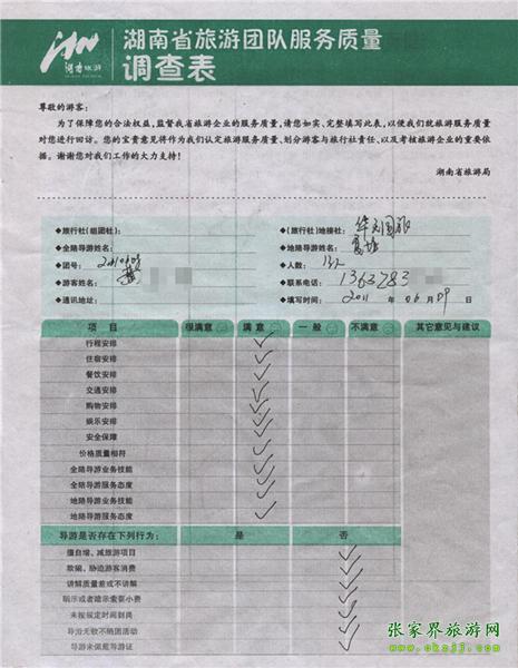 2011年6月9日黃先生一行13人旅游質(zhì)量反饋