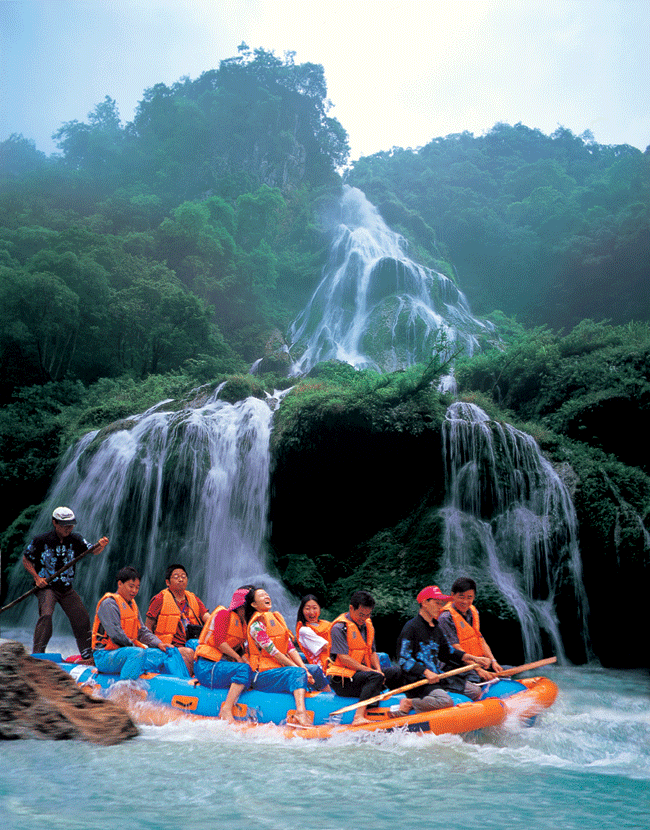 到了大門口,彭導(dǎo)幫我們?nèi)ベI了門票,248元/人,共花去496元。彭導(dǎo)先前給我們預(yù)算是,按最經(jīng)濟(jì)的帳目來算的,470元/人(包括進(jìn)山大門票,但不包括索道、天梯、酒水等),他說出門在外,能節(jié)約點(diǎn)就節(jié)約點(diǎn)。當(dāng)然他也知道我們可能會(huì)超出這個(gè)標(biāo)準(zhǔn),如果有必要,到時(shí)可以再自己花費(fèi)。買了門票后,我給了他500塊,算是這幾天的費(fèi)用,他說,不是說好是每人470的嗎,你應(yīng)該是給我444塊。我說,上次謝謝您的關(guān)心,這次不能讓你太吃虧了。彭導(dǎo)說,那今天晚上我叫店家給你們加個(gè)菜,呵呵呵。 下午,我們玩了森林公園中的黃石寨和金鞭溪??戳颂鞎鴮毾?、點(diǎn)將臺(tái)、南天柱、摘星臺(tái)、六奇閣,五指峰、金鞭溪、金鞭巖、文星巖、紫草潭、千里相會(huì)等,彭導(dǎo)果然是彭導(dǎo),有著二十年的導(dǎo)游經(jīng)驗(yàn)的他就是不同凡響啊,個(gè)個(gè)景點(diǎn)都是如數(shù)家珍,說得是頭頭是道。(據(jù)網(wǎng)上說,有些導(dǎo)游是只帶路不講解,讓人只是看看表面,而無法去領(lǐng)略張家界那些精美絕倫的凄美傳說。我個(gè)人認(rèn)為張家界的傳說也是應(yīng)該值得每一個(gè)游人去了解,去領(lǐng)略的,如果你來張家界沒有聽到這些傳說的話,那一是你的導(dǎo)游的水平問題,二是你的一個(gè)很大的遺憾,你來張家界的經(jīng)歷是不完美的),什么龍蝦花的來歷,金鞭巖的前身,秦始皇和孟姜女與張家界的關(guān)系。晚上乘百龍電梯上袁家界(張家界的核心)一家旅館住宿。晚餐時(shí),一葷一素一湯。我們吃著吃著,老板笑咪咪的搬上一鍋火鍋,當(dāng)?shù)氐耐岭u火鍋。我們很詫異,我說,我們沒有點(diǎn)這個(gè)菜??!老板,你是不是弄錯(cuò)了?老板說,這是你們彭導(dǎo)叫我特地做的。我突然明白了,一定是彭導(dǎo)是為我多給的那50多塊錢了。由于長途奔波,加上下午又走了很多路,晚上洗了一個(gè)澡就睡下了。山里的氣溫很低,在這全國都如火爐時(shí),張家界的晚上卻要蓋很厚的被子,真是一塊寶地啊。 第二天早上,我們參觀了袁家界的風(fēng)景,其中最有名的當(dāng)然數(shù)天下第一橋,這是由兩座巖石山的山頂自然生長在一起,非人所能為也。天下第一橋的稱號(hào)當(dāng)之無愧啊。當(dāng)然在袁家界,后花園也是不能不看的。張家界號(hào)稱“峰三千,水八百”,在這里你就能明顯的感覺到這句話的前半句是那么的實(shí)在。看完張家界的核心袁家界,我們乘車到了天子山(張家界景區(qū)內(nèi)的最高的地方)。玩了賀龍公園、御筆峰、仙女散花、西海、石船出海、仙人橋、天子廟、十里畫廊、一步難行。不巧的是,那天山上下了一點(diǎn)陣雨,雨后一條彩虹掛在天上,更重要的是山上起了一點(diǎn)霧,使整座山都籠罩在霧中,若隱若現(xiàn),看上去就象是在云海中,好象老天特地配合我們似的,難得一見的西海等正好被我們趕上了。彭導(dǎo)告訴我們,這樣的機(jī)會(huì)是很難得的,可能是張家界為了感謝我的再次到來,給了我一個(gè)特別的禮物吧。我大笑。晚上趕到昨天住的地方去住宿。不提。 第三天我們玩了烏龍寨、三道鬼門關(guān)、天波府、一步登天、空中走廊等。主要是在楊家界的景區(qū)范圍內(nèi)。本來是第三天下午要去鳳凰的,但是考慮到我和女友小嵐好容易來張家界一次,盡量將張家界的能玩的地方去玩一下。我也曾聽說張家界不僅峰三千,水八百,同時(shí)天然溶洞也是非常不錯(cuò)的,據(jù)說其中一個(gè)溶洞為一根鐘乳石投保了1個(gè)還是2個(gè)億,(不怎么記得了,呵呵。)而且在張家界的宣傳資料上還看到了有漂流,打水仗等非常刺激的項(xiàng)目。我于是問一下彭導(dǎo),能否幫我們聯(lián)系一下,彭導(dǎo)很爽快的答應(yīng)了,他幫我們聯(lián)系了九天洞和茅巖河的公司。在彭導(dǎo)的上下打通下,本來是315元/人的行價(jià),硬是給用278元/人的價(jià)格給拿下了。當(dāng)搞定這些時(shí),已經(jīng)外面是天黑一片了(彭導(dǎo)家就在楊家界)彭導(dǎo)說他想回家看看,明天我們會(huì)和一群人去看洞和漂流,他就不陪我們?nèi)チ?,明天下午他?huì)在張家界市區(qū)去接我們,到時(shí)會(huì)有車送我們?nèi)ナ袃?nèi)。然后他會(huì)送我們上去鳳凰有車,并幫我們?nèi)ヂ?lián)系鳳凰的朋友來招待我們。 第四天,清晨我們便踏上了汽車去看洞漂流。號(hào)稱亞洲第一大洞的九天洞果然是名不虛傳,我們把它現(xiàn)在開發(fā)的部分粗略的走了一下,就花了我們近月4個(gè)小時(shí),洞中鐘乳石遍地,在五彩斑闌的燈光下,顯得晶瑩剔透,閃閃發(fā)光,讓人感覺到是到了水晶宮一般,地下還有陰河,遠(yuǎn)處通知海(據(jù)說)。對(duì)了,洞中溫度很低,常年在10多度。讓人在其中感覺到一陣陣寒意。故想進(jìn)去的朋友記得多穿點(diǎn)衣服,以免著涼,切記。我們當(dāng)時(shí)就是吃了很大的虧,從洞中出來時(shí),小嵐就在點(diǎn)喀漱。下午來到茅巖河漂流。上船前看到有人賣水瓢,心中不免奇怪。雖說,張家界金鞭溪的水可以喝,但也不是每一條河的水都能喝???于是上前去問,一打聽才知道,這瓢不是用來舀水喝的,而是用來打水仗的。本來因?yàn)樾褂悬c(diǎn)小感冒,我們打算保持中立,但一看到各位船友們個(gè)個(gè)磨拳擦