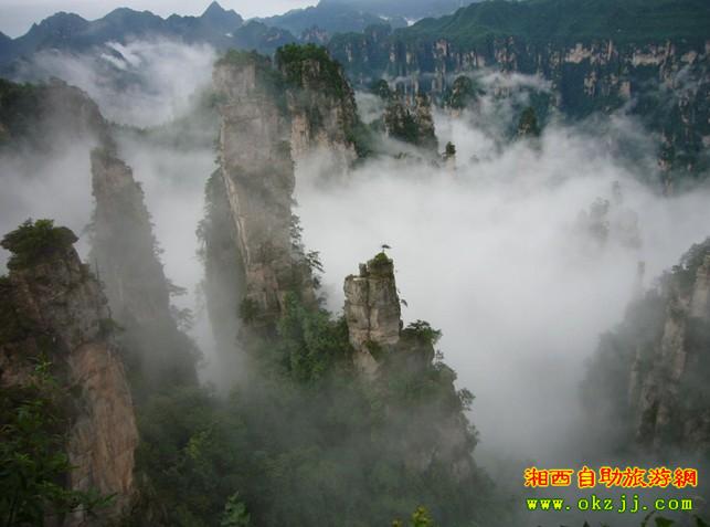 D1:早上由森林公園進(jìn)山,游金鞭溪、母子峰、豬八戒背媳婦、師徒取經(jīng)、神鷹護鞭、文星巖、紫草潭、千里相會,中午飯后游:袁家界,天下第一橋,迷魂臺,后花園等??赐硐?nbsp; 宿揚家界。