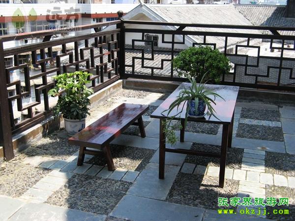 活動(dòng)區(qū)域有兩個(gè),一個(gè)是走廊活動(dòng)區(qū),適合吹風(fēng)、發(fā)呆,一個(gè)是屋頂陽(yáng)臺(tái)活動(dòng)區(qū),適合日光浴,陽(yáng)臺(tái)上的盆景和花卉會(huì)映襯著天門山景!